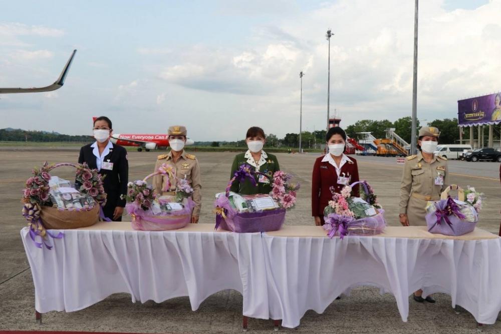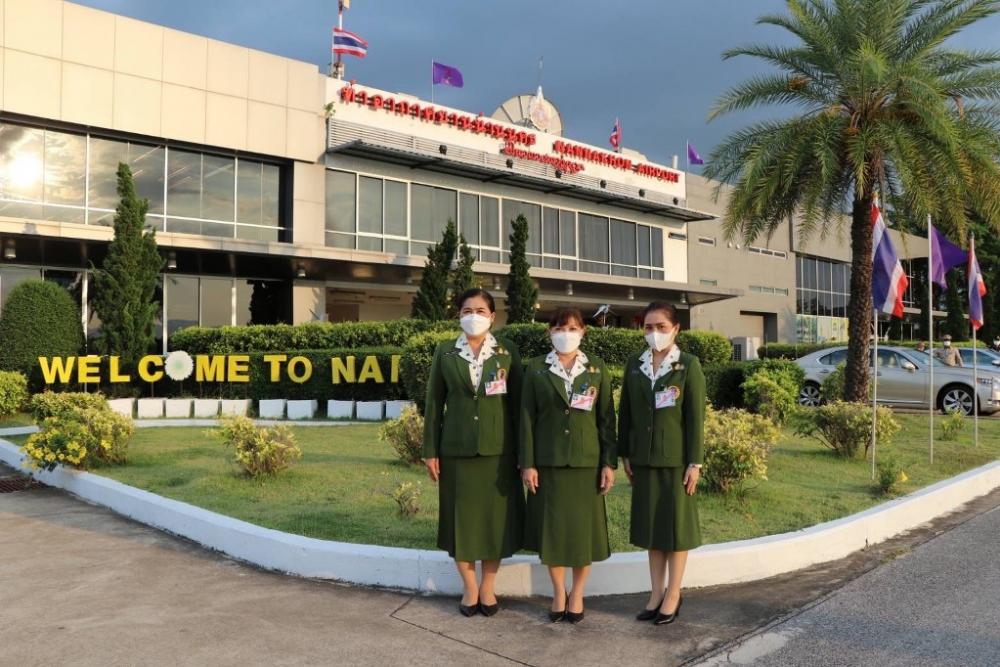 ประธานสมาคมแม่บ้านทหารบก สาขา ทภ.๓ พร้อมด้วย คุณศรัญญา นุตคำแหง ภริยา ปษ.ทภ.๓ เฝ้าฯ รับ ส่งเสด็จ สมเด็จพระกนิษฐาธิราชเจ้า กรมสมเด็จพระเทพรัตนราชสุดาฯ สยามบรมราชกุมารี เสด็จฯ มาทรงปฏิบัติพระราชกรณียกิจ ในพื้นที่ จว.น.น. ณ ท่าอากาศยานน่านนคร อ.เมือง จว.น.น.