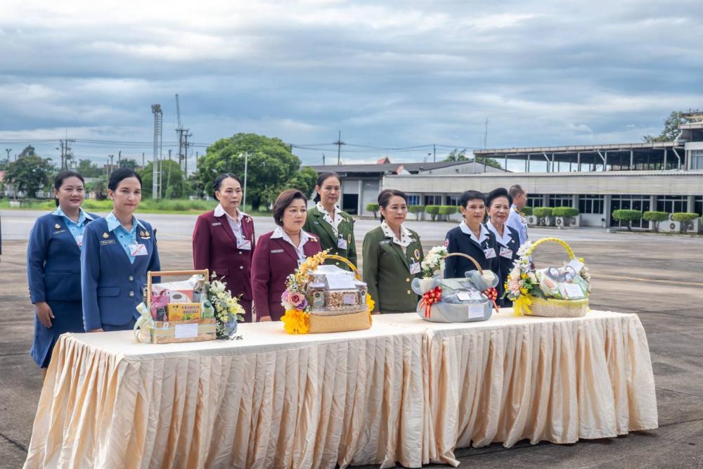 ในการนี้ คุณอิสรีย์ บุญญะ ประธานสมาคมแม่บ้านทหารบก สาขา กองทัพภาคที่ 3 ร่วมต้อนรับ - ส่ง ณ ท่าอากาศยานทหารกองบิน 46 อำเภอเมือง จังหวัดพิษณุโลก