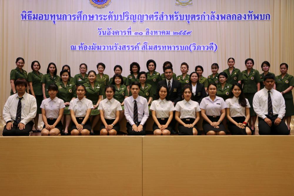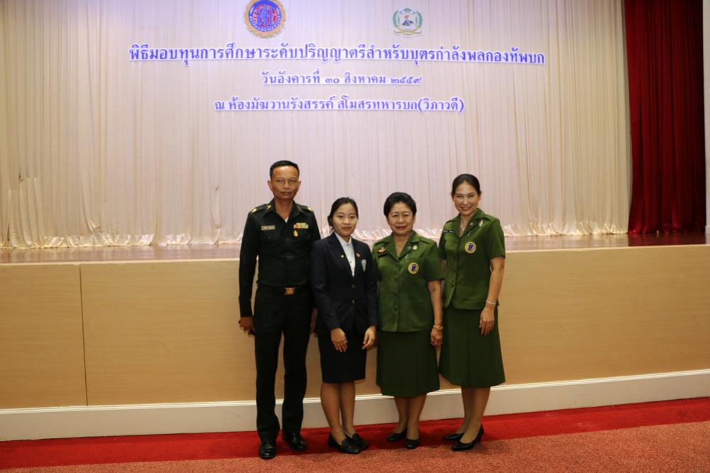 ประธานสมาคมแม่บ้านทหารบก สาขา ทภ.๓ ร่วมพิธีมอบทุนการศึกษาระดับปริญญาตรี ประจำปีการศึกษา ๒๕๕๙