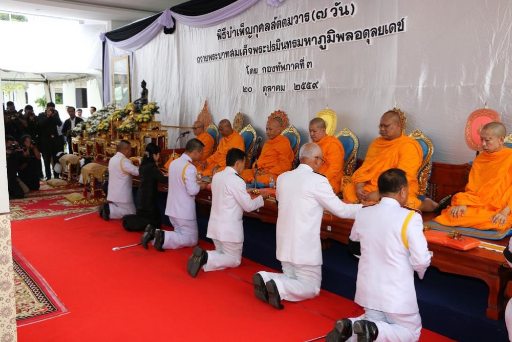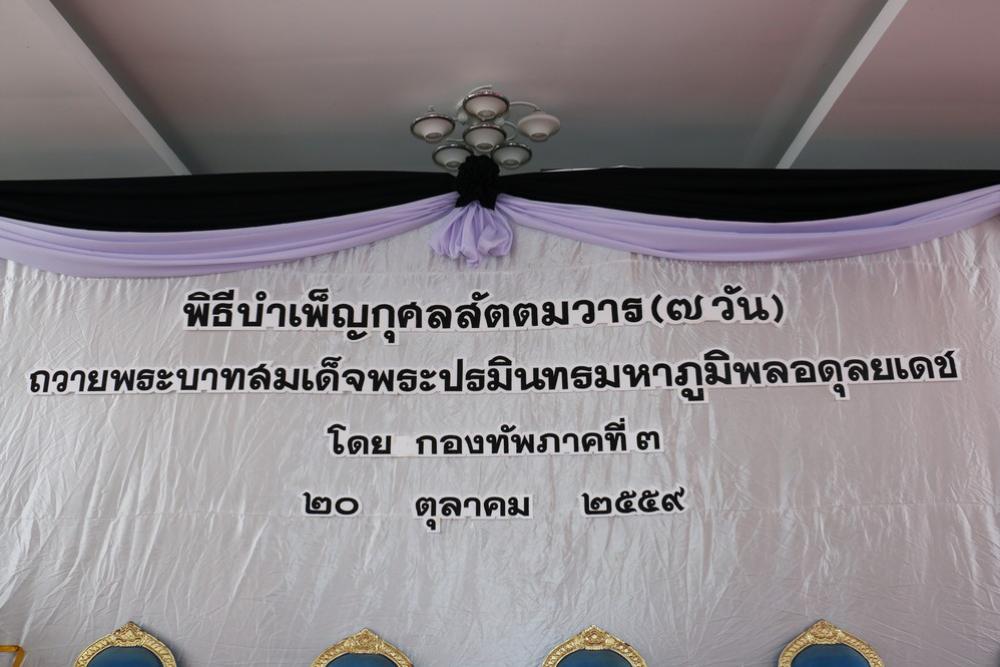 ประธานสมาคมแม่บ้าน ทบ. สาขา ทภ.๓ ร่วมพิธีบำเพ็ญกุศลสัตตมวาร ( ๗ วัน ) ถวายพระบาทสมเด็จพระปรมินทรมหาภูมิพลอดุลยเดช มหิตลาธิเบศรามาธิบดี จักรีนฤบดินทร สยามินทราธิราช บรมนาถบพิตร ณ ลานพื้นแข็ง สโมสรบันเทิงทัพ