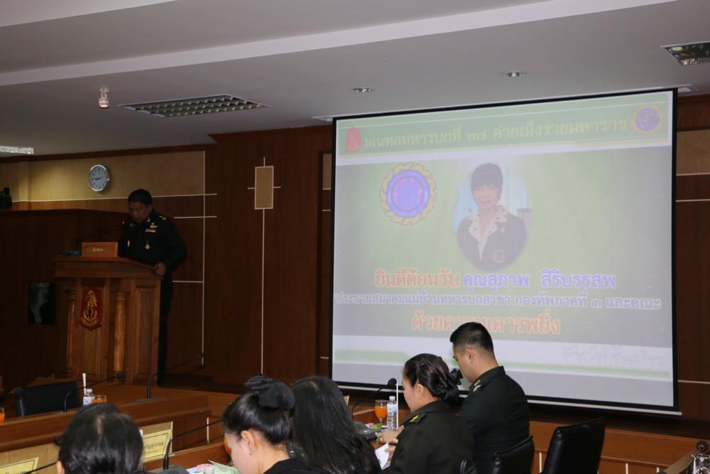 เมื่อวันพฤหัสบดีที่ ๒๙ ธันวาคม ๒๕๕๙ คุณสุภาพ สิริบรรสพ ประธานสมาคมแม่บ้านทหารบก สาขา กองทัพภาคที่ ๓ และคณะ เยี่ยมกิจกรรมการดำเนินงานของชมรมแม่บ้านทหารบก สาขา กองทัพภาคที่ ๓ ในพื้นที่จังหวัดเชียงราย