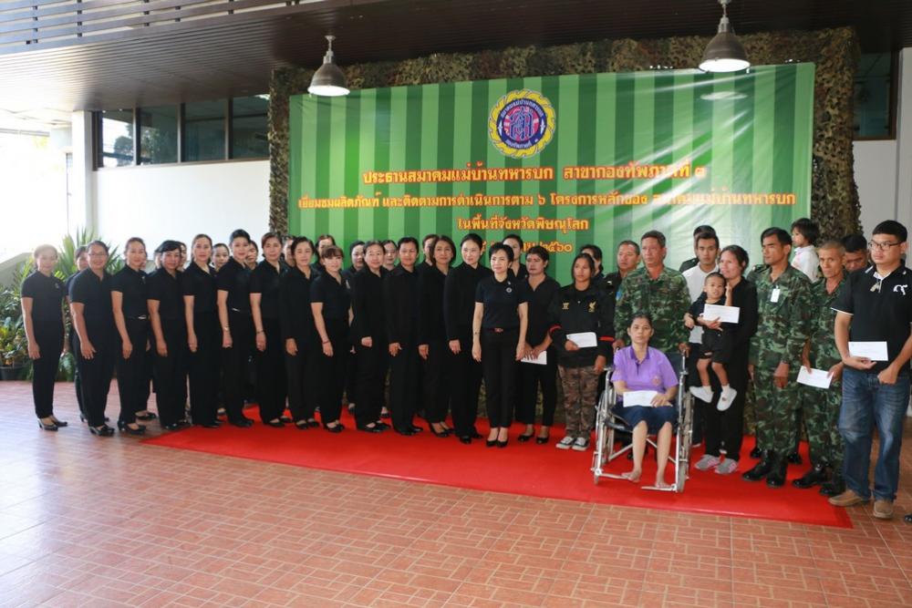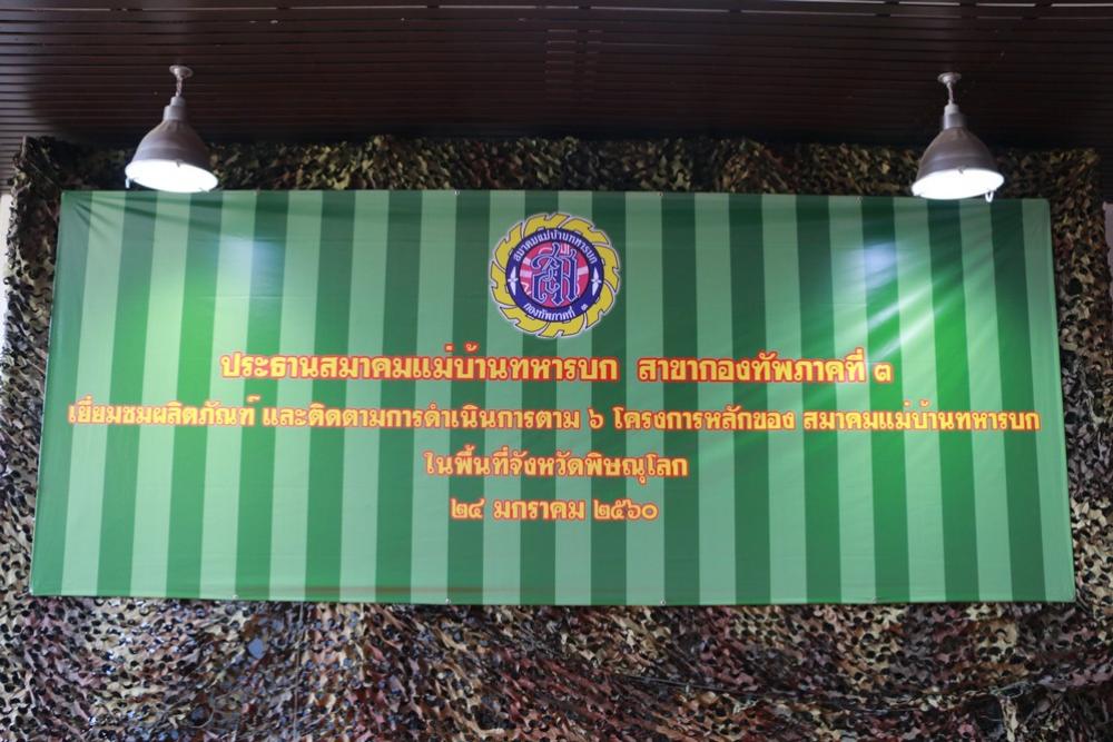 เมื่อวันอังคารที่ ๒๔ มกราคม ๒๕๖๐ คุณ สุภาพ สิริบรรสพ ประธานสมาคมแม่บ้านทหารบก สาขา กองทัพภาคที่ ๓ และคณะ เยี่ยมกิจกรรมแม่บ้านทหารบก ของสมาคมแม่บ้านทหารบก สาขา กองทัพภาคที่ ๓ ในพื้นที่จังหวัดพิษณุโลก และรับฟังการบรรยายสรุป การดำเนินงานหน่วย ณ กองบัญชาการกองพลทหารราบที่ ๔ จากนั้นเยี่ยมชมผลิตภัณฑ์แม่บ้านทหารบก ณ บริเวณด้านหลังกองบัญชาการ กองพลทหารราบที่ ๔ อำเภอเมือง จังหวัดพิษณุโลก