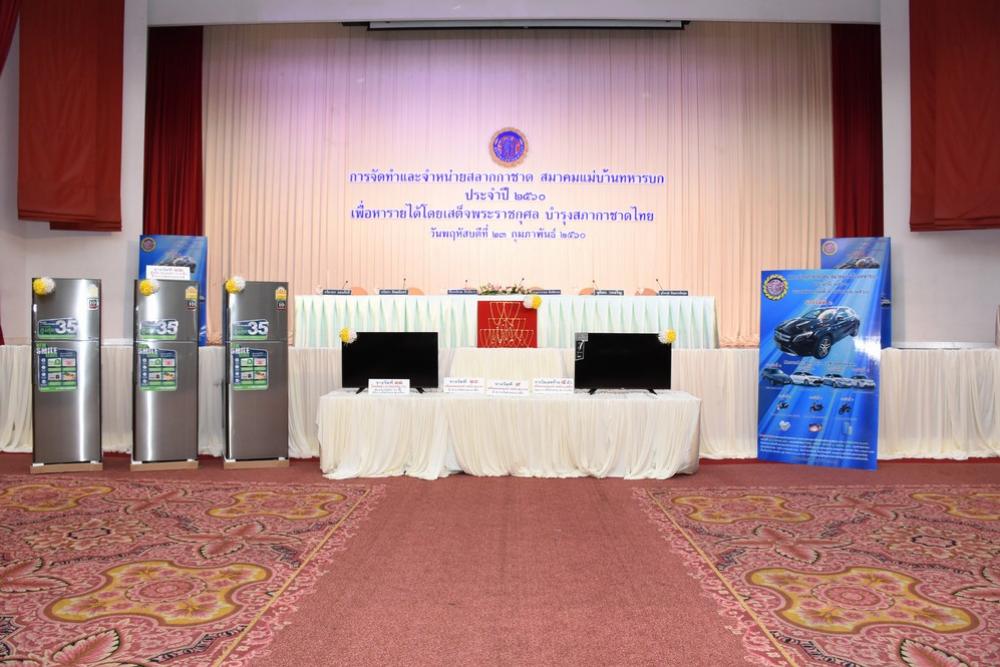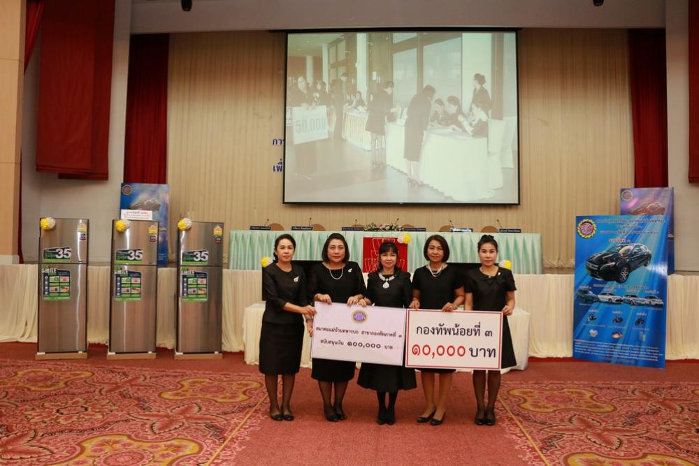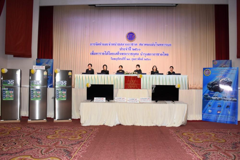 ประธานสมาคมแม่บ้าน ทบ. สาขา ทภ.๓ และคณะ ร่วมบริจาคเงินและร่วมงานแถลงข่าวการออกสลากกาชาด ประจำปี ๖๐ ณ สโมสร ทบ.