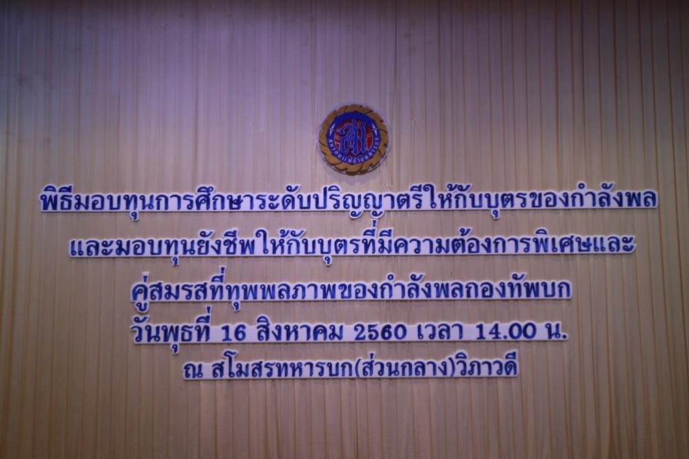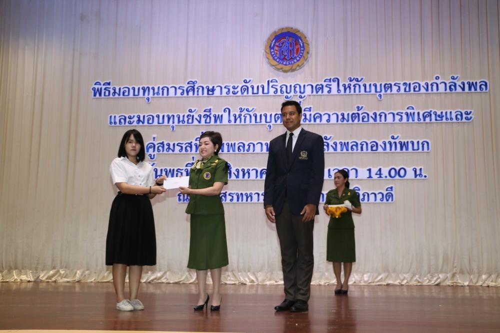 ประธานสมาคมแม่บ้าน ทบ. สาขา ทภ.๓ ร่วมพิธีมอบทุนการศึกษาระดับปริญญาตรีให้กับบุตรข้าราชการและมอบทุนยังชีพให้กับบุตรที่มีความต้องการพิเศษและคู่สมรสที่ทุพพลภาพของกำลังพลกองทัพบก ณ สโมสร ทบ.