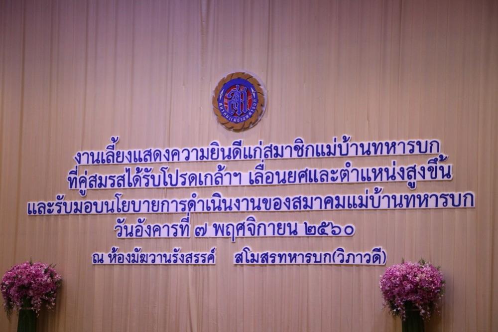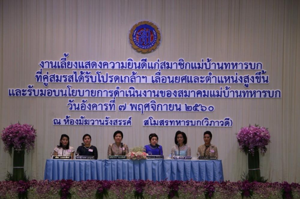 ประธานสมาคมแม่บ้าน ทบ. สาขา ทภ.๓ และคณะ ร่วมงานเลี้ยงแสดงความยินดีแก่สมาชิก ทบ. ที่คู่สมรสได้รับโปรดเกล้าฯ เลื่อนยศและตำแหน่งสูงขึ้นและรับมอบนโยบายการดำเนินงานของสมาคมแม่บ้าน ทบ.