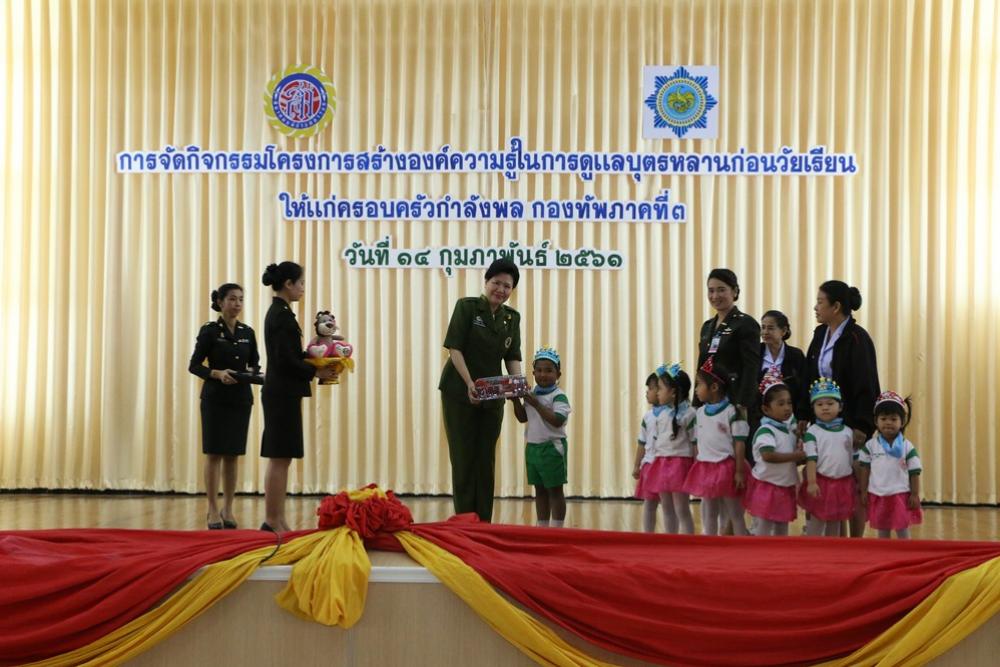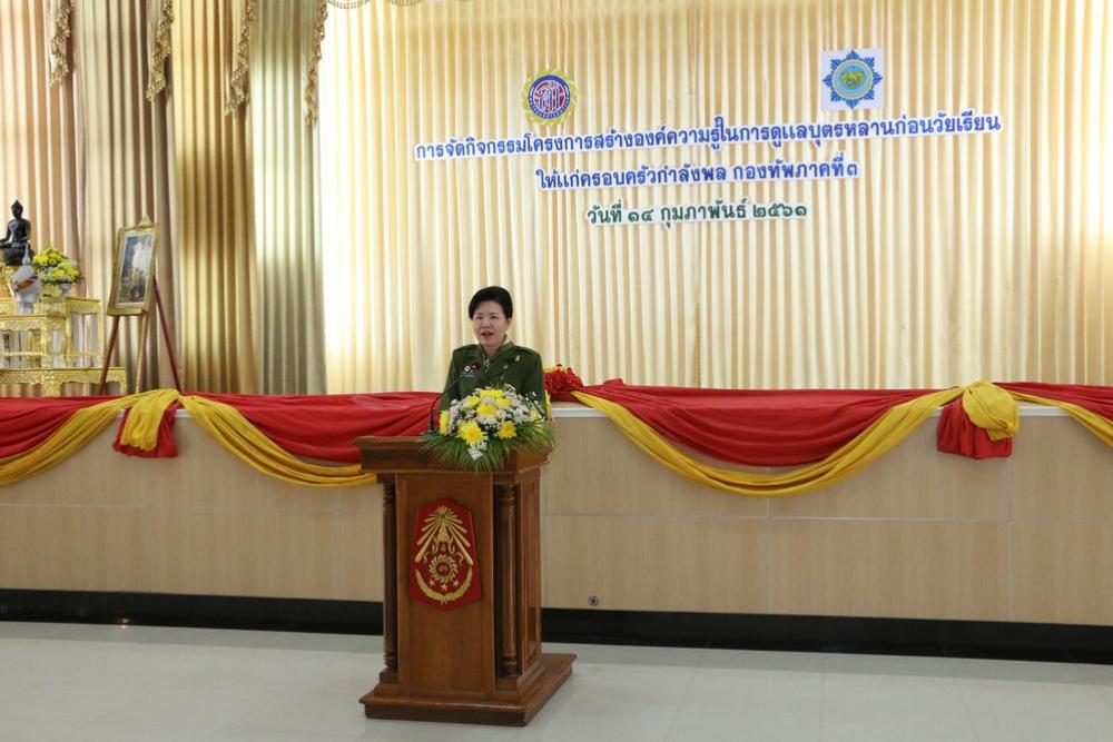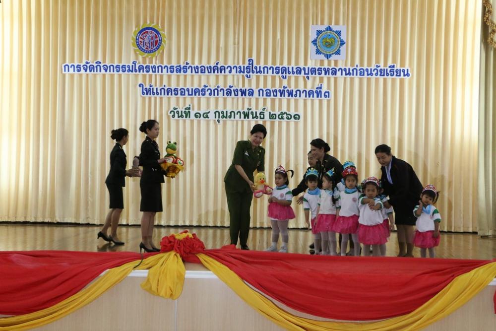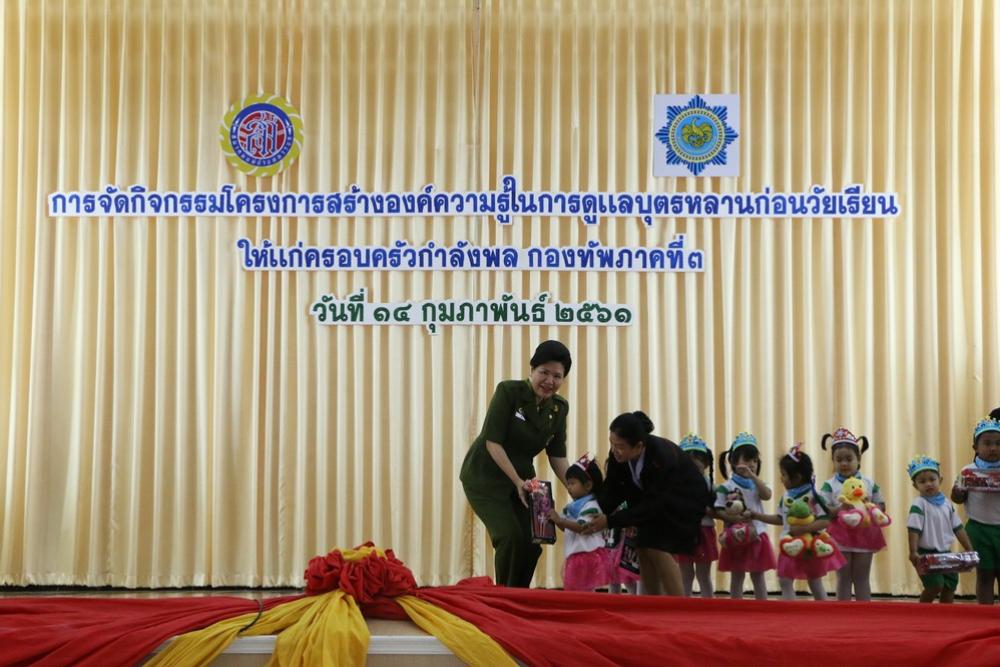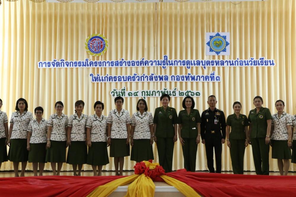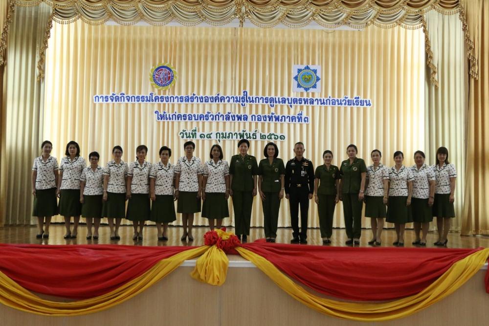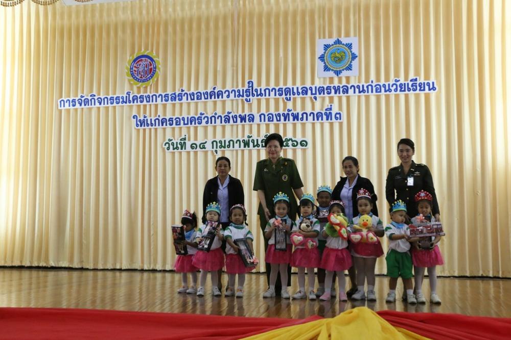 คุณจริยาพร ทองภักดี อุปนายกสมาคมแม่บ้าน ทบ. และคณะเดินทางมาเป็นประธานในการจัดกิจกรรมโครงการสร้างองค์ความรู้ในการดูแลบุตรหลานก่อนวัยเรียนให้แก่ครอบครัวกำลังพล ทภ.๓ ณ ห้องบันเทิงทัพ ๑๐๑ สโมสรบันเทิงทัพ ทภ.๓