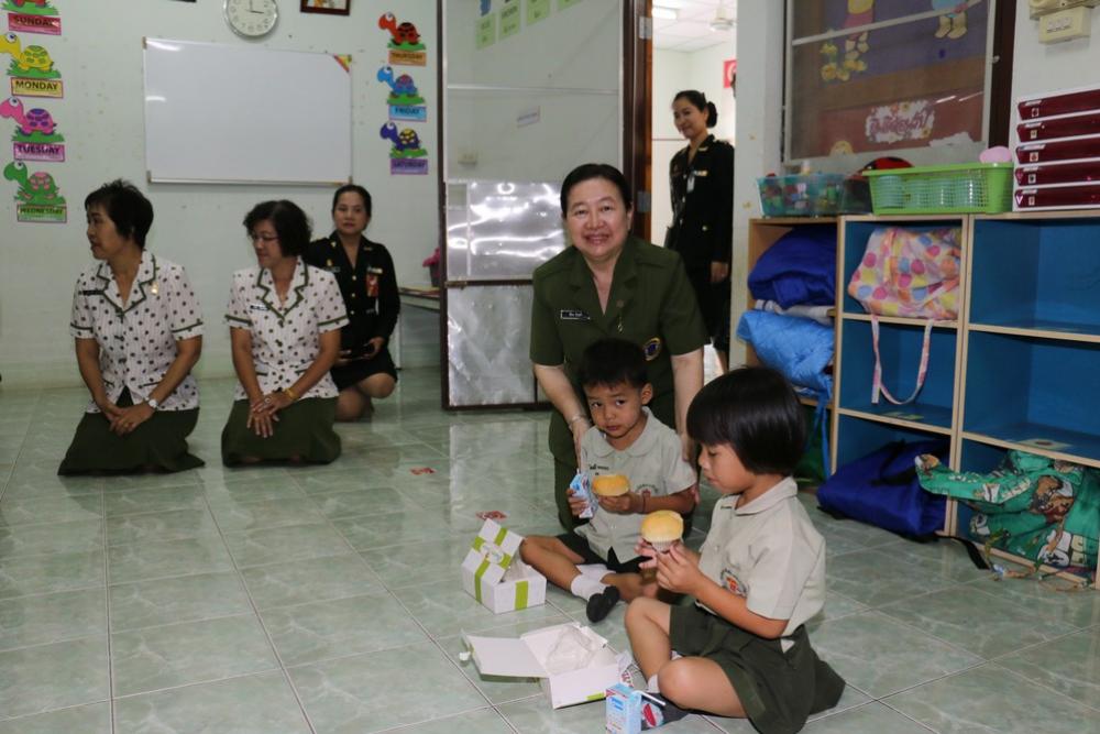 ประธานสมาคมแม่บ้าน ทบ. สาขา ทภ.๓ และคณะ เยี่ยมชมห้องเสริมพัฒนาการเด็กก่อนวัยเรียน ณ ศูนย์พัฒนาเด็กเล็กค่ายพิชัยดาบหัก