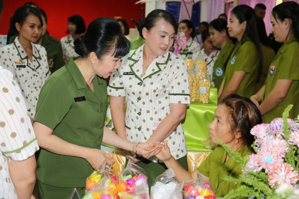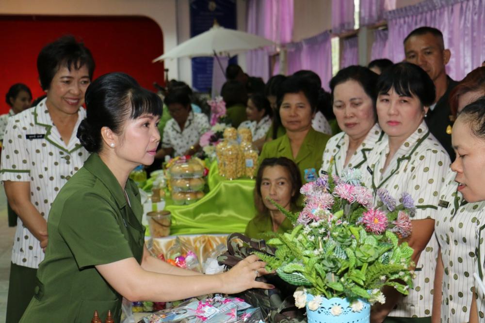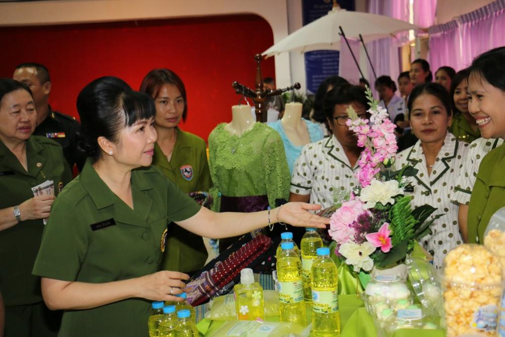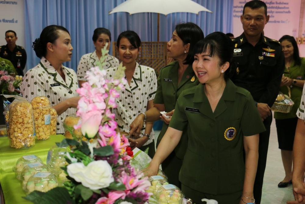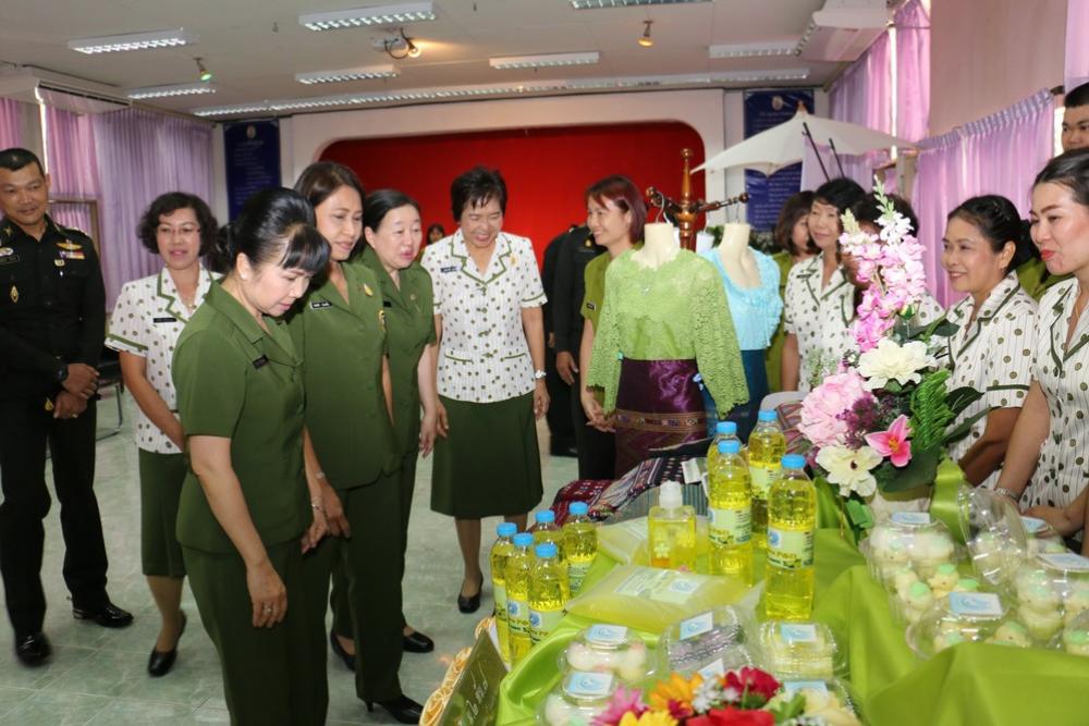 ประธานสมาคมแม่บ้าน ทบ. สาขา ทภ.๓ และคณะ เยี่ยมชมโครงการพัฒนาอาชีพเสริมและผลิตภัณฑ์แม่บ้าน ณ สโมสรนายทหารค่ายพิชัยดาบหัก