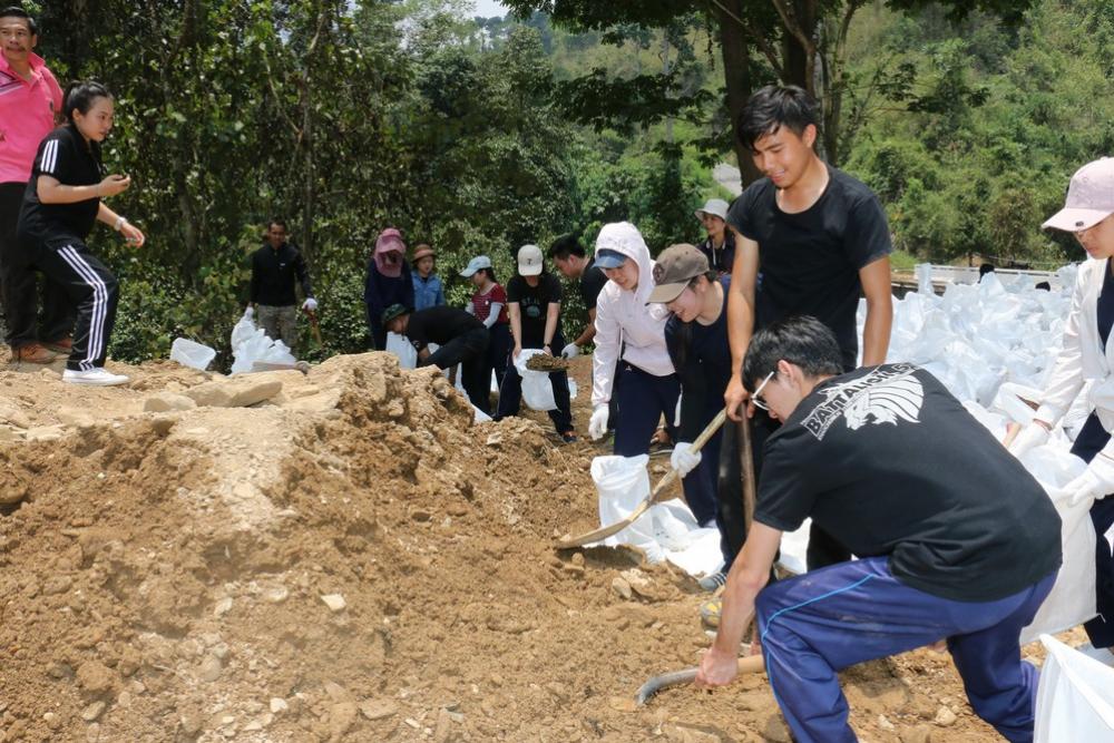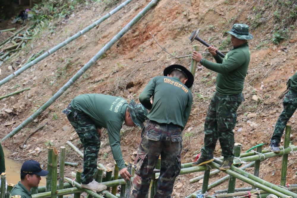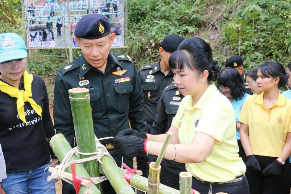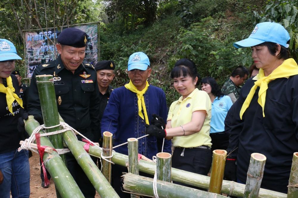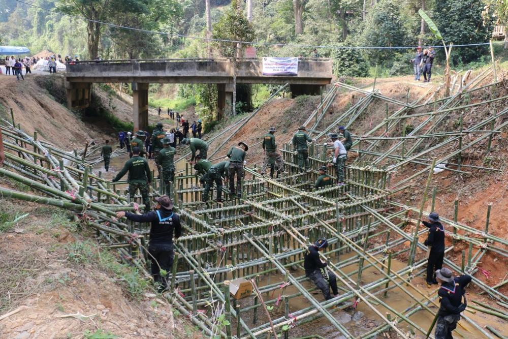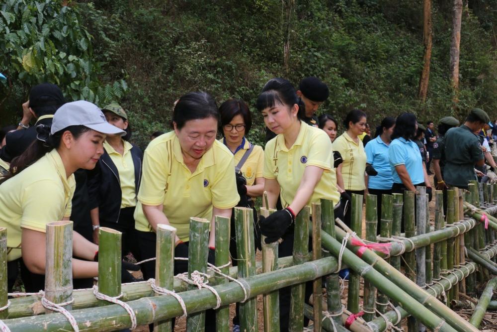 ประธานสมาคมแม่บ้าน ทบ. สาขา ทภ.๓ และคณะ ร่วมกิจกรรมสร้างฝายมีชีวิต ณ ลำห้วยใหญ่ บ.มหาราช จว.อ.ต.