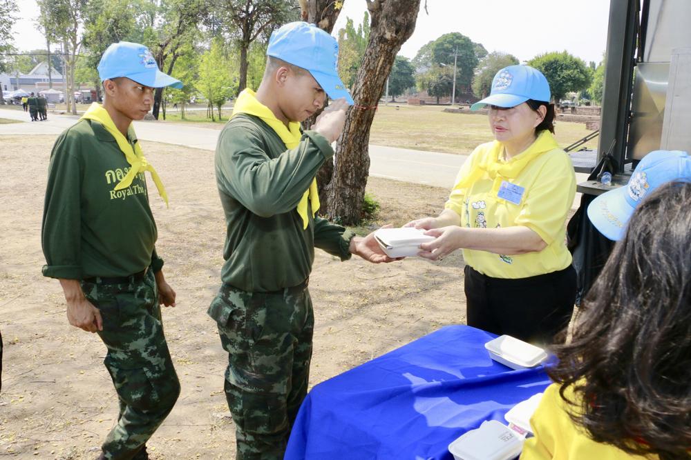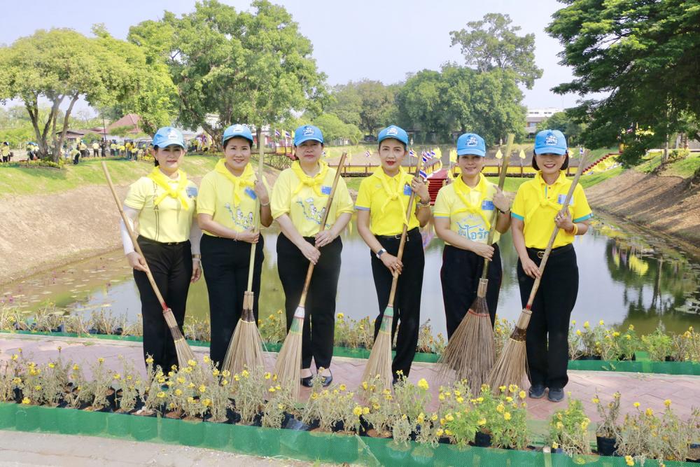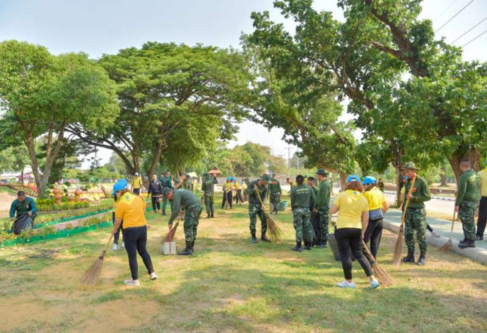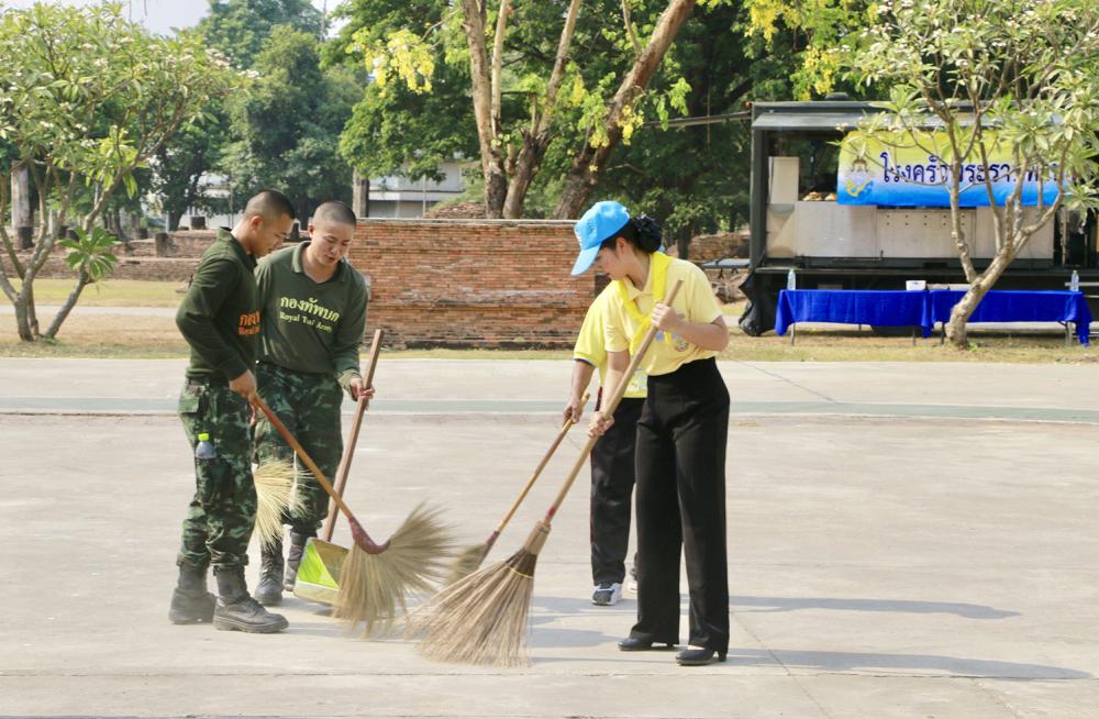 ประธานสมาคมแม่บ้าน ทบ. สาขา ทภ.๓ และสมาชิกแม่บ้าน ทบ. สาขา ทภ.๓ ร่วมทำกิจกรรมจิตอาสา เราทำความ ดี ด้วยหัวใจ พัฒนา พระราชวังจันทน์ อ.เมือง จว.พ.ล.