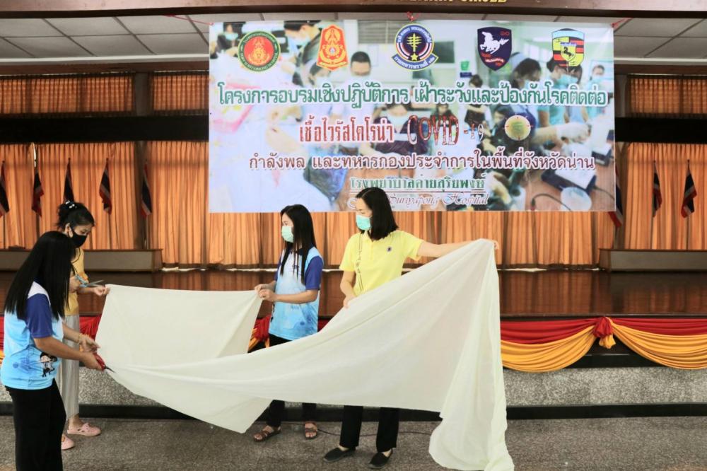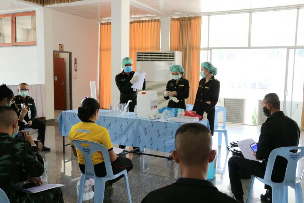 ประธานสมาคมแม่บ้าน ทบ. สาขา มทบ.๓๘ อบรมการทำเจลแอลกอฮอล์ล้างมือ,การผสมน้ำยาเพื่อทำความสะอาด และการตัดเย็บหน้ากากอนามัยแบบผ้า พร้อมแจกให้กับกำลังพล และสมาชิกแม่บ้านภายในหน่วย เพื่อเป็นการป้องกันการแพร่ระบาดของไวรัสโคโรน่า (COVID-19)