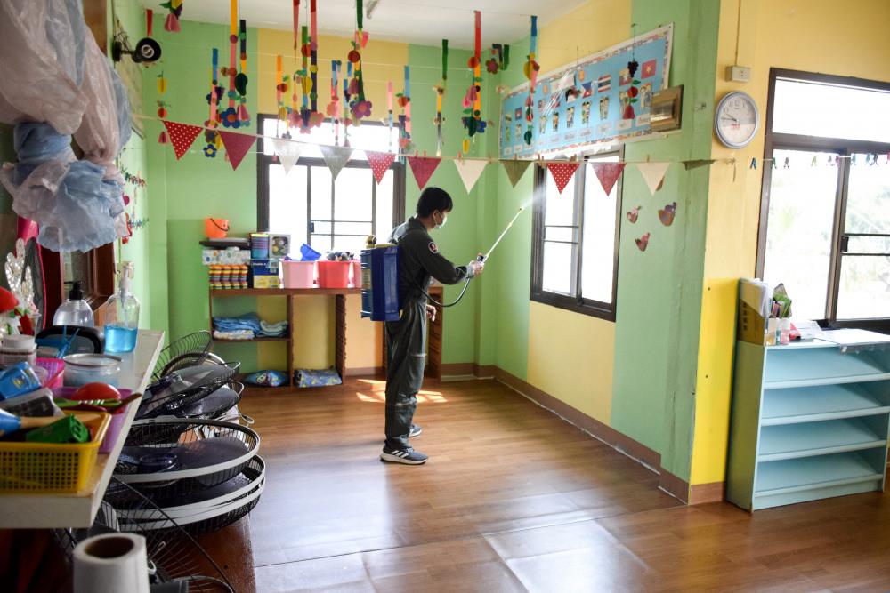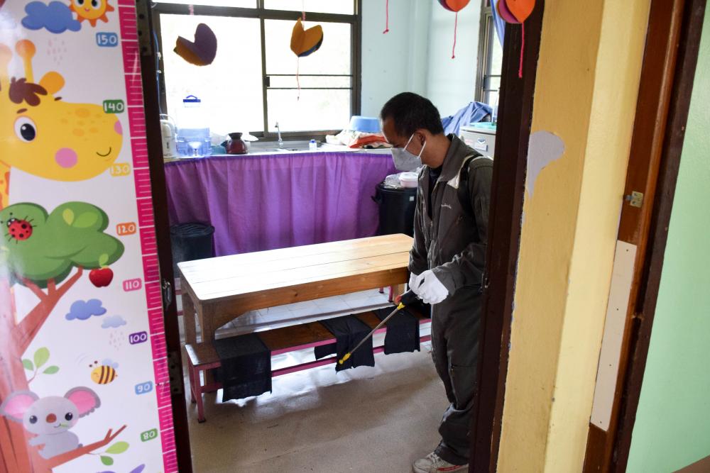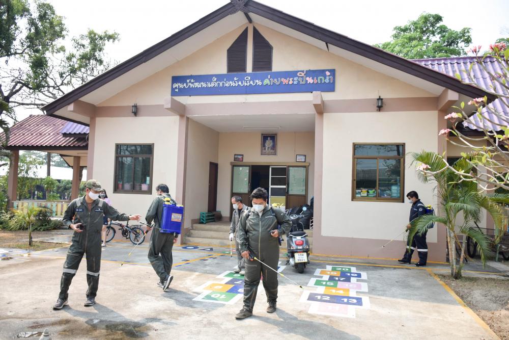 ป.พัน.7 พล.ร.7 ทำการฉีดพ่นน้ำยาฆ่าเชื้อไวรัสโคโรนา 2019 (COVID-19) ภายในอาคาร และบริเวณโดยรอบ ศูนย์พัฒนาเด็กเล็กก่อนวัยเรียนฯ ค่ายพระปิ่นเกล้า