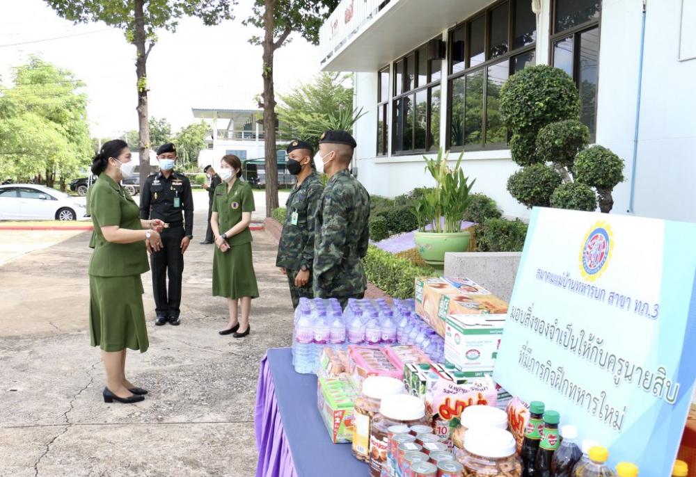 รองประธานสมาคมแม่บ้านทหารบก สาขา ทภ.๓ เป็นผู้แทนประธานสมาคมแม่บ้านทหารบก สาขา ทภ.๓ มอบสิ่งของอุปโภคบริโภคที่จำเป็นให้กับครูนายสิบ ที่มีภารกิจฝึกทหารใหม่ ณ หน่วยฝึกทหารใหม่ ส.พัน.๒๓ ทภ.๓