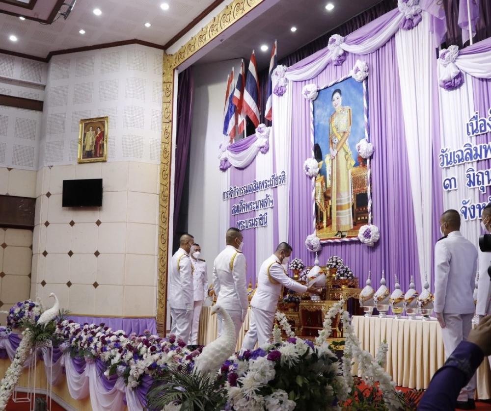 รองประธานสมาคมแม่บ้านทหารบก สาขา ทภ.๓ เป็นผู้แทนประธานสมาคมแม่บ้านทหารบก สาขา ทภ.๓ ร่วมกิจกรรมเฉลิมพระเกียรติ เนื่องในโอกาสวันเฉลิมพระชนมพรรษา สมเด็จพระนางเจ้าสุทิดา พัชรสุธาพิมลลักษณ พระบรมราชินี ณ ศาลาประชาคม ศาลากลาง จว พ.ล.
