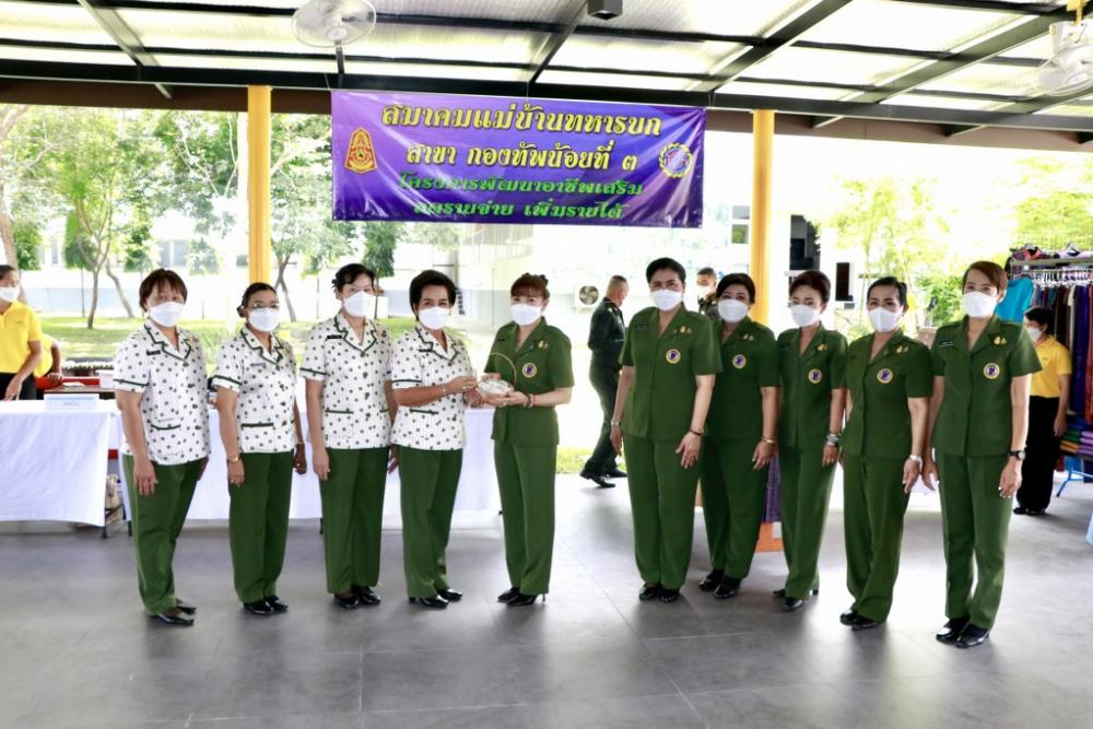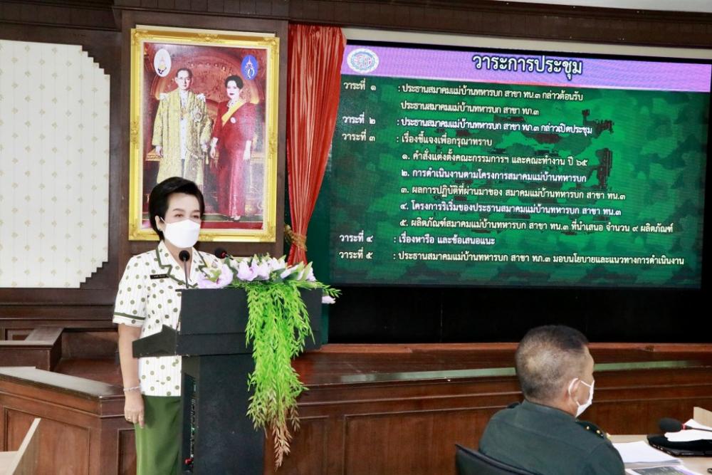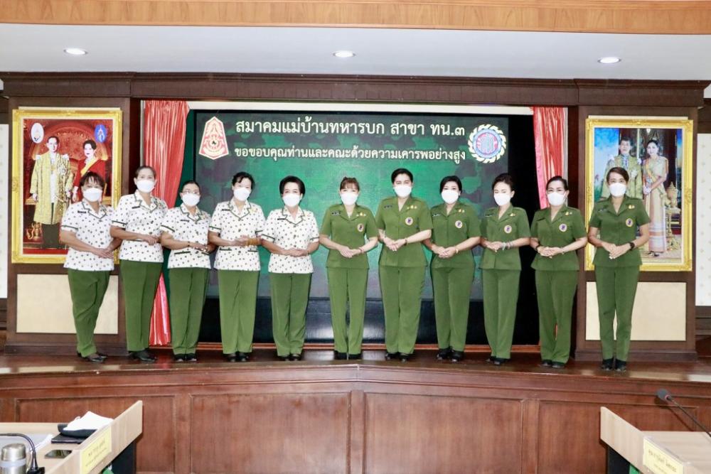 - รับฟังการบรรยายสรุปผลการดำเนินงานของ สมาคมแม่บ้าน ทบ. สาขา ทน.๓