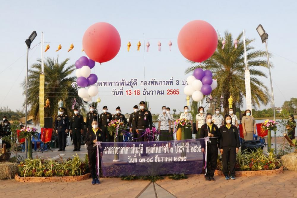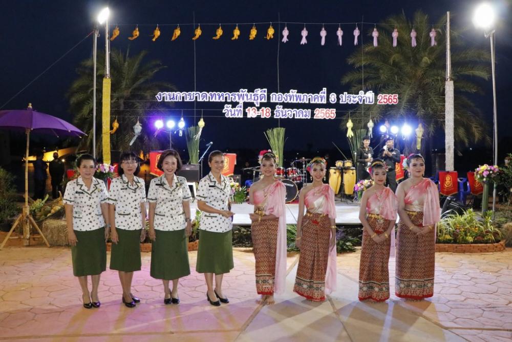 ประธานสมาคมแม่บ้านทหารบก สาขา กองทัพภาคที่ 3 พร้อมด้วยสมาชิกสมาคมแม่บ้านทหารบก สาขา กองทัพภาคที่ 3 ร่วมพิธีเปิดงานกาชาดทหารพันธุ์ดี กองทัพภาคที่ 3 ประจำปี 2565
