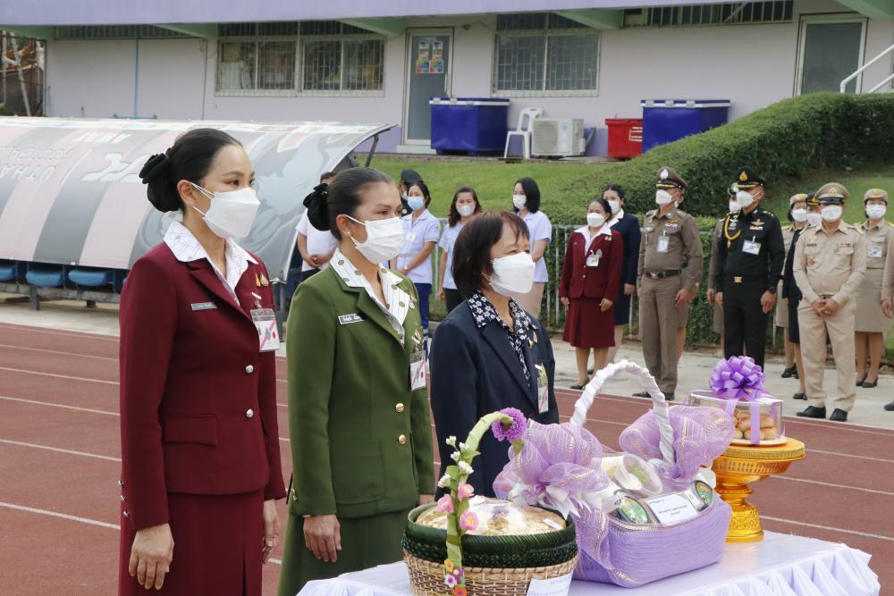 คุณ กันต์ฤทัย เอี่ยมสุโร ประธานสมาคมแม่บ้านทหารบก สาขา กองทัพภาคที่ 3 เฝ้าฯ ส่งเสด็จ สมเด็จพระกนิษฐาธิราชเจ้า กรมสมเด็จพระเทพรัตนราชสุดาฯ สยามบรมราชกุมารี เสด็จฯ มาทรงปฏิบัติพระราชกรณียกิจ ในพื้นที่ จังหวัดอุทัยธานี และ จังหวัดนครสวรรค์ ณ สนาม ฮ.ชั่วคราว สนามกีฬาจังหวัดอุทัยธานี อำเภอเมือง จังหวัดอุทัยธานี