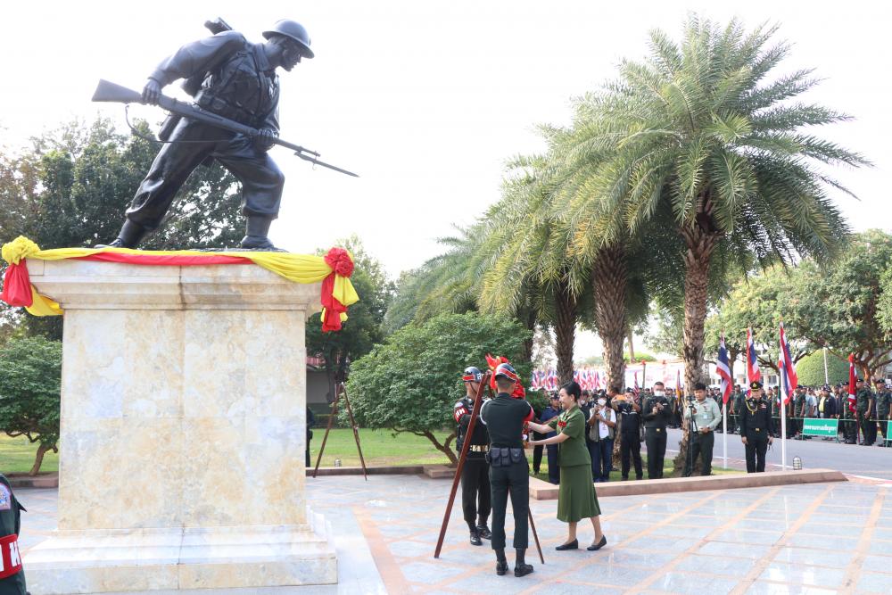 รองประธานสมาคมแม่บ้านทหารบก สาขา กองทัพภาคที่ 3 พร้อมด้วย สมาชิกสมาคมแม่บ้านทหารบก สาขา กองพลทหารราบที่ 4 ร่วมพิธีวางพวงมาลาและพิธีสงฆ์ เนื่องในวันทหารผ่านศึก