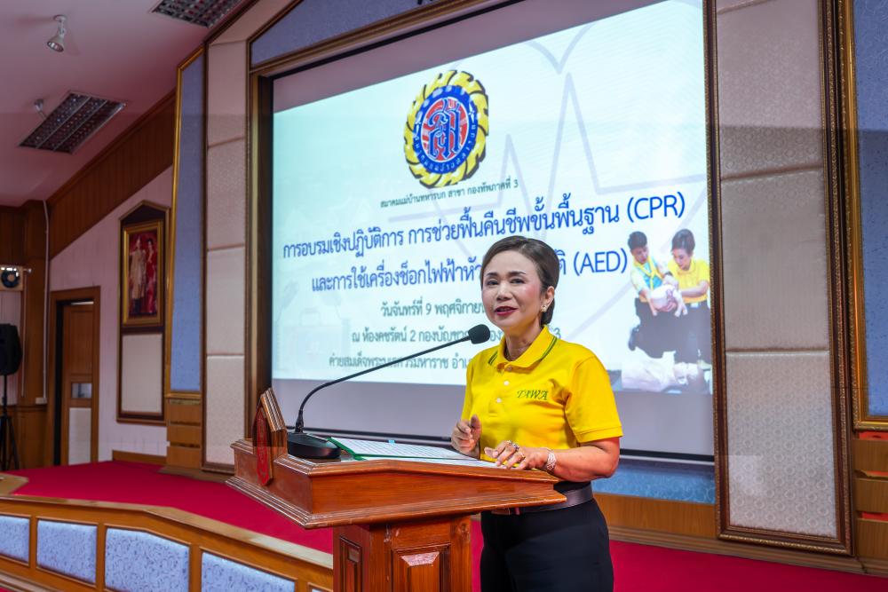 ประธานสมาคมแม่บ้านทหารบก สาขา กองทัพภาคที่ 3 เป็นประธานการอบรมเชิงปฏิบัติการ การช่วยฟื้นคืนชีพขั้นพื้นฐาน (CPR) และการใช้เครื่องช็อกไฟฟ้าหัวใจอัตโนมัติ (AED)