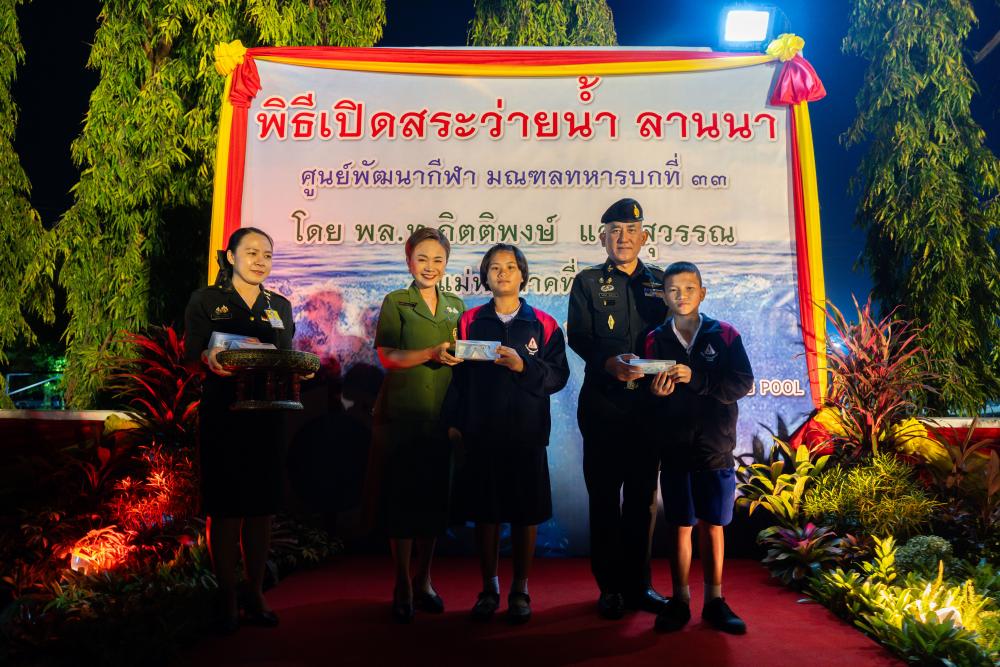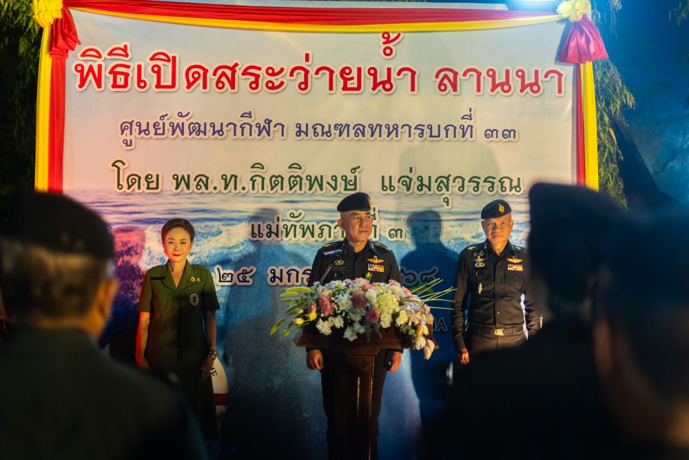 พลโท กิตติพงษ์ แจ่มสุวรรณ แม่ทัพภาคที่ 3 พร้อมด้วย พันเอกหญิง สุชาดา แจ่มสุวรรณ ประธานสมาคมแม่บ้านทหารบก สาขา กองทัพภาคที่ 3 เป็นประธานในพิธีเปิดสระว่ายน้ำลานนา ณ ศูนย์พัฒนากีฬา มณฑลฑลทหารบกที่ 33 อำเภอเมือง จังหวัดเชียงใหม่