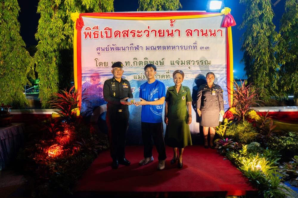 เมื่อวันที่ 25 มกราคม 2568 เวลา 1930 พลโท กิตติพงษ์ แจ่มสุวรรณ แม่ทัพภาคที่ 3 พร้อมด้วย พันเอกหญิง สุชาดา แจ่มสุวรรณ ประธานสมาคมแม่บ้านทหารบก สาขา กองทัพภาคที่ 3 เป็นประธานในพิธีเปิดสระว่ายน้ำลานนา ณ ศูนย์พัฒนากีฬา มณฑลฑลทหารบกที่ 33 อำเภอเมือง จังหวัดเชียงใหม่ โดยได้ดำเนินการปรับปรุงตั้งแต่เดือนกันยายน 2567 ที่ผ่านมา ทั้งนี้เพื่อให้บริการแก่กำลังพล ครอบครัว และประชาชน ได้ออกกำลังกาย รวมทั้งเด็กที่มีความต้องการพิเศษ โรงเรียนโสตศึกษาอนุสารสุนทร ได้ร่วมโครงการว่ายน้ำเพื่อชีวิต ในการเสริมทักษะการป้องกันภัยและรอดพ้นจากเหตุจมน้ำ