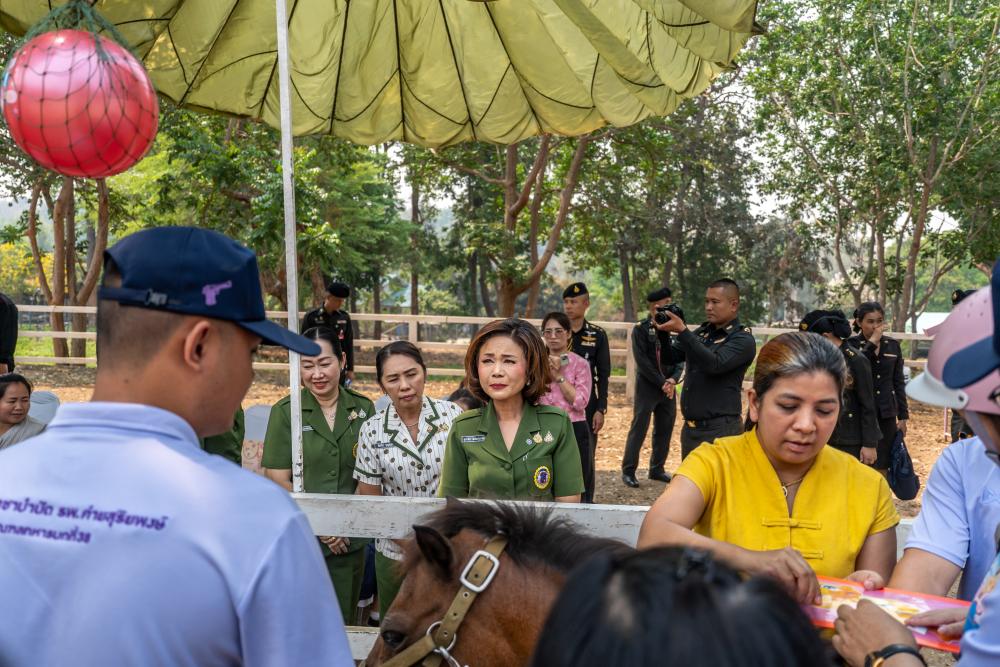 เมื่อวันศุกร์ ที่ 28 มีนาคม 2568 พันเอกหญิง สุชาดา แจ่มสุวรรณ ประธานสมาคมแม่บ้านทหารบก สาขา กองทัพภาคที่ 3 และคณะ เยี่ยมเยียนกิจกรรมการดำเนินงานของ สมาคมแม่บ้านทหารบก สาขา กองทัพภาคที่ 3 ในพื้นที่จังหวัดน่าน (มทบ.38, กรม ทพ.32, ม.2 พัน.10 และ ม.2 พัน.15) โดยได้มอบทุนให้กับบุตรที่มีความต้องการพิเศษ รับฟังการบรรยายสรุปผลการดำเนินงาน เยี่ยมชมผลิตภัณฑ์แม่บ้านของหน่วย ณ ค่ายสุริยพงษ์ อำเภอเมือง จังหวัดน่าน รวมทั้งเยี่ยมชมโครงการอาชาบำบัดและโครงการธาราบำบัด ณ โรงพยาบาลค่ายสุริยพงษ์ นอกจากนี้ยังเยี่ยมชมศูนย์พัฒนาเด็กเล็ก กองพันทหารม้าที่ 15 กรมทหารม้าที่ 2 ทั้งนี้เพื่อเป็นการติดตามขับเคลื่อนโครงการของสมาคมแม่บ้านทหารบก สาขา กองทัพภาคที่ 3 ให้เกิดประสิทธิภาพ เป็นรูปธรรม สอดคล้องตามนโยบายของนายกสมาคมแม่บ้านทหารบกต่อไป