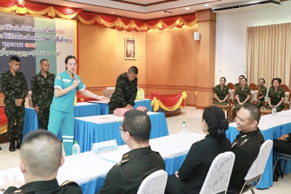 เมื่อวันศุกร์ที่ 16 พฤษภาคม 2568 เวลา 1000 พันเอกหญิง สุชาดา แจ่มสุวรรณ และคณะ เป็นผู้แทนสมาคมแม่บ้านทหารบก มอบเครื่องกระตุกหัวใจด้วยไฟฟ้าแบบอัตโนมัติ (AED) ซึ่งสมาคมแม่บ้านทหารบก ได้บริจาคเงินให้กับ"กองทุนโรงพยาบาลค่ายสมเด็จพระนเรศวรมหาราช" ซึ่งมี พลตรี ปิยลาภ วสุรัต ผู้อำนวยการโรงพยาบาลค่ายสมเด็จพระนเรศวรมหาราช เป็นผู้รับมอบ ทั้งนี้วัตถุประสงค์ของการบริจาคเงิน เพื่อนำไปจัดซื้อเครื่องกระตุกหัวใจด้วยไฟฟ้าแบบอัตโนมัติ (AED) จำนวน 10 เครื่อง แล้วส่งมอบให้กับหน่วยในพื้นที่กองทัพภาคที่ 3 ที่ยังขาดแคลน สำหรับไว้ใช้เมื่อประสบเหตุฉุกเฉิน เพื่อเป็นการเพิ่มโอกาสในการรอดชีวิต จากภาวะหัวใจวายเฉียบพลันต่อไป