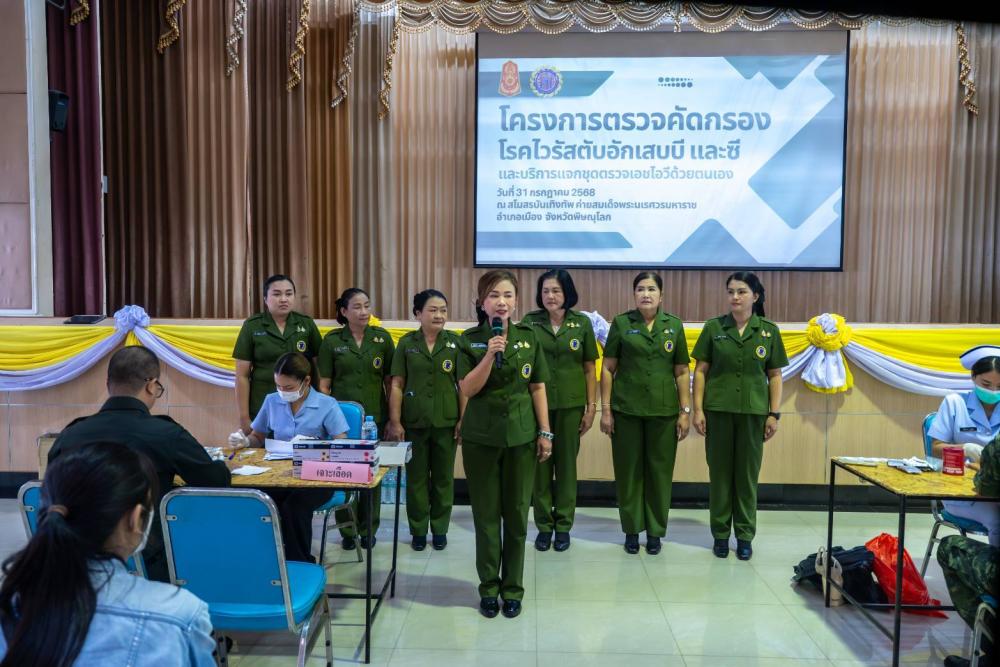 เมื่อวันที่ 31 กรกฎาคม 2568 เวลา 0930 พันเอกหญิง สุชาดา แจ่มสุวรรณ ประธานสมาคมแม่บ้านทหารบก สาขา กองทัพภาคที่ 3 และสมาชิกสมาคมแม่บ้านทหารบก สาขา กองทัพภาคที่ 3 เยี่ยมเยียนการตรวจคัดกรองกำลังพล และสมาชิกสมาคมแม่บ้านทหารบก ของหน่วยขึ้นตรงกองทัพภาคที่ 3 ในพื้นที่จังหวัดพิษณุโลก ภายใต้โครงการคัดกรองโรคไวรัสตับอักเสบบีและซี พร้อมบริการแจกชุดตรวจเอชไอวีด้วยตนเอง ณ สโมสรบันเทิงทัพ ค่ายสมเด็จพระนเรศวรมหาราช อำเภอเมือง จังหวัดพิษณุโลก เพื่อส่งเสริมการดูแลสุขภาพเชิงรุก และเพิ่มโอกาสในการเข้าถึงการตรวจวินิจฉัยโรคที่สำคัญของครอบครัวกำลังพล