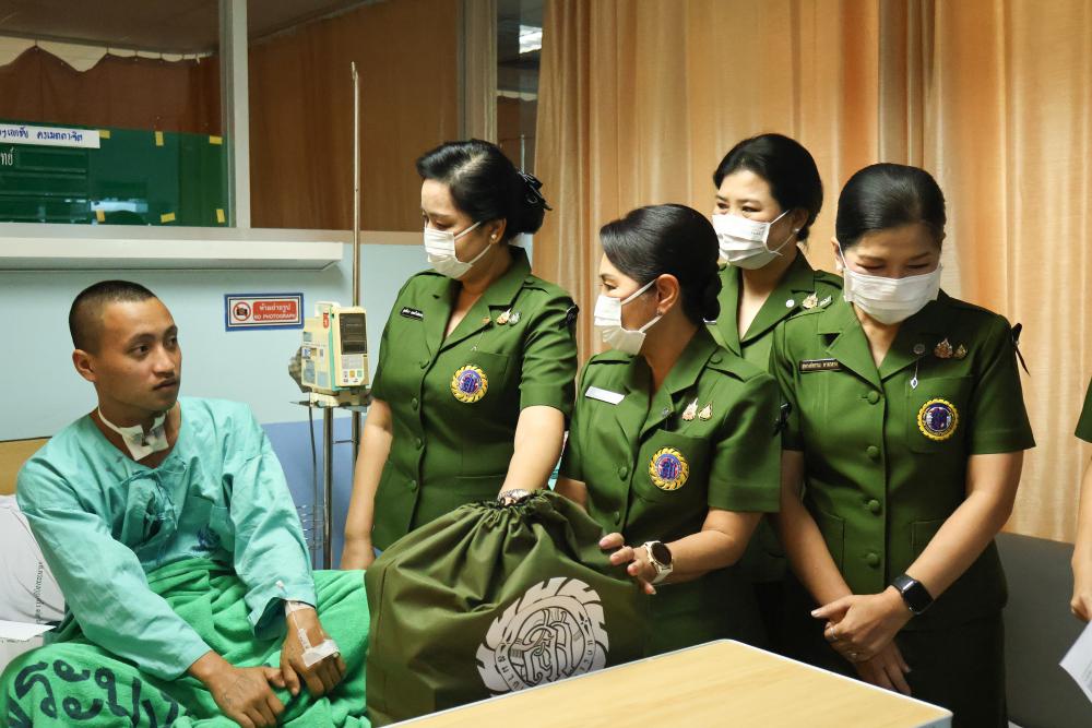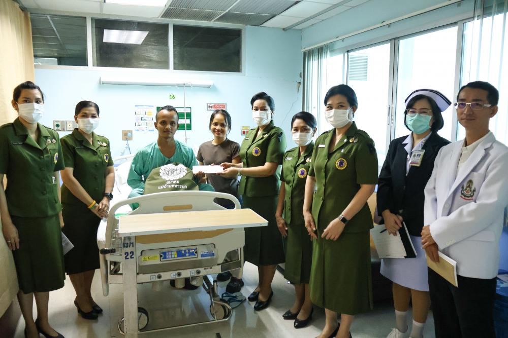 คุณสุภัทรา แคล้วปลอดทุกข์ นายกสมาคมแม่บ้านทหารบก และคณะ เยี่ยมเยียนกำลังพล ี่ได้รับบาดเจ็บจากเหตุการณ์รบปะทะ ขณะปฏิบัติหน้าที่ในพื้นที่ชายแดนไทย - กัมพูชาพร้อมกันนี้ คุณอิสรีย์ บุญญะ ประธานสมาคมแม่บ้านทหารบก สาขา กองทัพภาคที่ 3 ได้ร่วมคณะดังกล่าว