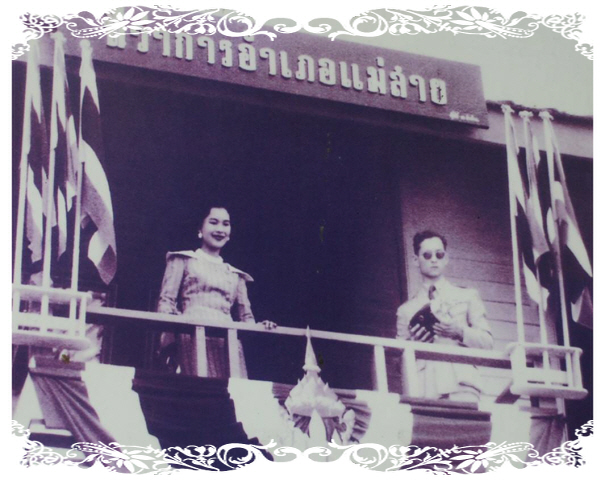 " รถยนต์พระที่นั่ง ขณะเสด็จไปยัง ที่ว่าการอำเภอแม่สาย จังหวัดเชียงราย " " ประทับที่ว่าการอำเภอแม่สาย จังหวัดเชียงราย " " ทรงตรัส ทักทายกับประชาชนชาวอำเภอแม่สาย จังหวัดเชียงราย ที่มาเฝ้ารับเสด็จ " พระบาทสมเด็จพระเจ้าอยู่หัว เสด็จพระราชดำเนินทรงเยี่ยมราษฎร เมื่อ ปี พ.ศ.๒๕๑๓ " ทรงตรัสกับ ข้าราชการที่มาเฝ้ารับเสด็จ ที่ดอยผาหมี อำเภอแม่สาย จังหวัดเชียงราย " " ทรงเสวยพระสุธารสชา ครั้งเสด็จดอยผาหมี ณ บ้านราษฏร โดยไม่ถือพระองค์ " " ทรงม้า ทอดพระเนตร ภูมิประเทศ ดอยผาหมี อำเภอแม่สาย จังหวัดเชียงราย " " ประชาชนทูลเกล้าถวายของที่ระลึก ขณะเสด็จเยี่ยมประชาชน ที่ดอยผาหมี อำเภอแม่สาย จังหวัดเชียงราย " พระบาทสมเด็จพระเจ้าอยู่หัว เสด็จพระราชดำเนินทรงเยี่ยมราษฎร เมื่อ วันที่ ๒๗ กุมภาพันธ์ พ.ศ.๒๕๒๕ " พระบาทสมเด็จพระเจ้าอยู่หัว สมเด็จพระนางเจ้าฯ พระบรมราชินีนาถ เสด็จพร้อมด้วยพระเทพรัตนราชสุดาฯสยามบรมราชกุมารี และพระเจ้าบรมวงค์เธอพระองค์เจ้าโสมสวลีพระวรราชาทินัตดามาตุ ได้เสด็จเยี่ยมทหารหาญ และราษฎร ณ ฐานปฏิบัติการดอยพญาพิภักดิ์ บนสันดอยยาว อำเภอเทิง จังหวัดเชียงราย และได้ทรงกรุณาพระราชทานประทับรอยพระบาทของพระองค์ ลงบนปูนพลาสเตอร์ที่ทางฝ่ายทหาร (พันโท วิโรจน์ ทองมิตร ผู้บังคับการกองพัน) ได้เตรียมไว้เพื่อเป็นศิริมงคล และเป็นมิ่งขวัญแก่ทหารหาญทั้งปวง "