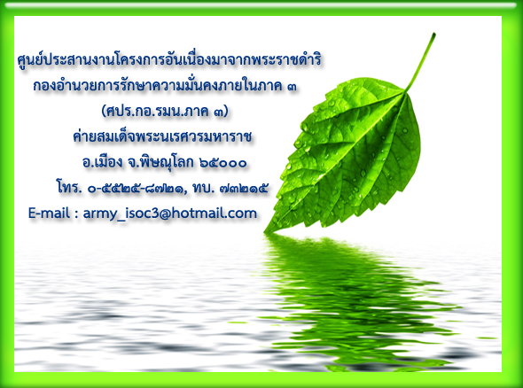 โทร. ๐-๕๕๒๕-๘๗๒๑, ทบ. ๗๓๒๑๕, E-mail : army_isoc3@hotmail.com