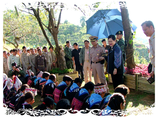 พระราชเสาวนีย์ในสมเด็จพระนางเจ้าฯ พระบรมราชินีนาถ ได้พระราชทานเมื่อ วันที่ ๑๔ มกราคม พ.ศ.๒๕๔๖ " ให้หน่วยงานที่เกี่ยวข้อง จัดตั้งสถานีพัฒนาการเกษตรที่สูงขึ้นโดยทรงเน้น เรื่อง ให้คนอยู่ร่วมกับป่าได้อย่างผสมผสานกลมกลืน " พระราชเสาวนีย์ในสมเด็จพระนางเจ้าฯ พระบรมราชินีนาถ ได้พระราชทานเมื่อ วันที่ ๒๑ มกราคม พ.ศ.๒๕๔๙ " เพิ่มเติม ให้ดำเนินการปลูกต้นไม้ ฟื้นฟูสภาพต้นน้ำ โดยปลูกต้นพญาเสือโคร่ง เพื่อให้เป็นแหล่งม่องเที่ยวในอนาคต ทั่วบริเวณ "