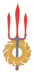 "พระไตรศร" เป็นตรางา ลักษณะกลมรี กว้าง ๕.๔ ซม. ยาว ๖.๗ ซม. รูปราวพาดพระแสงศร ๓ องค์คือ พระแสงศรพรหมศาสตร์, พระแสงศรอัคนีวาต และพระแสงศรประลัยวาต (เป็นศรของพระพรหม, พระนารายณ์ และของพระอิศวร ซึ่งใช้ตามความหมายของพระนามเดิมคือ "ประชาธิปกศักดิเดชน์" คำว่า "เดชน์" แปลว่า "ลูกศร") เบื้องบนมีรูปพระแสงจักรและพระแสงตรีศูร อยู่ภายใต้พระมหาพิชัยมงกุฎ มีบังแทรกตั้งอยู่ ๒ ข้าง มีลายกนกแทรกอยู่ระหว่างพื้น